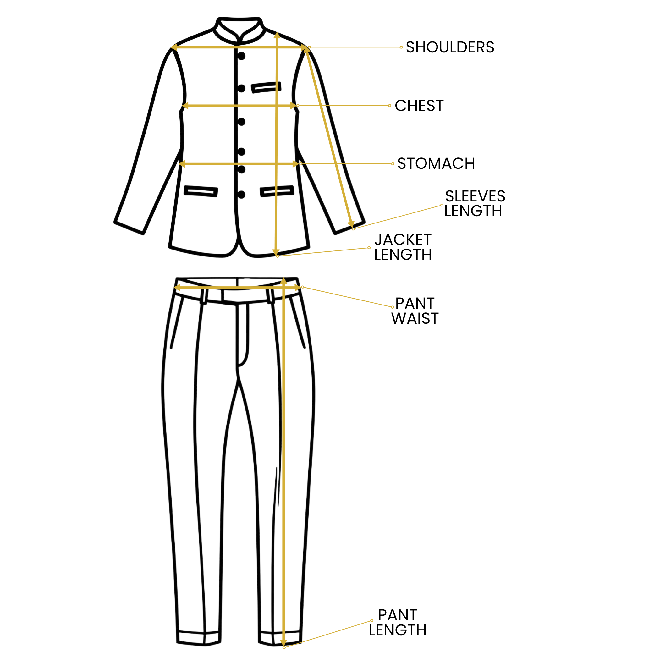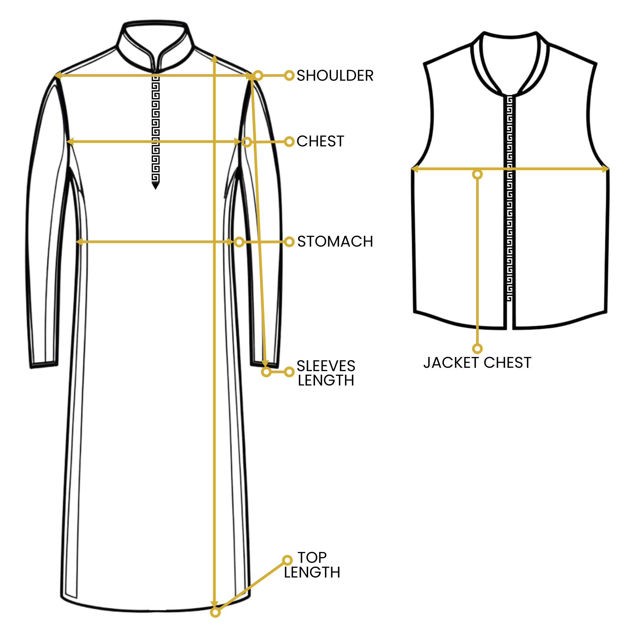 - Jacket Chest : Measure around the fullest part of your chest. (Jacket chest size runs 2inches smaller than kurta chest size for the best fit.)