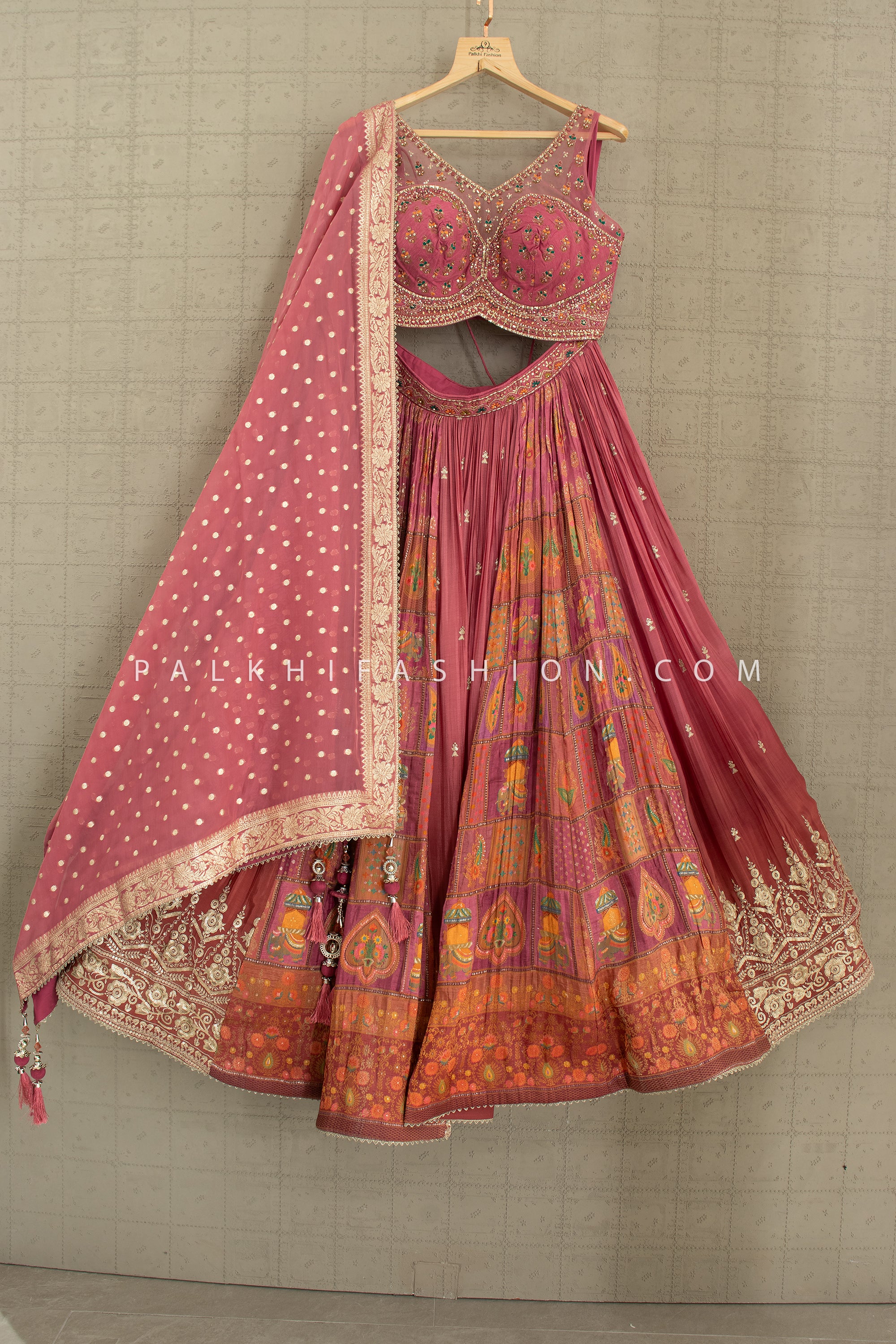 ✨ Royal Fusion: Rosewood Pink Patola Weave Lehenga Choli – Palkhi Fashion