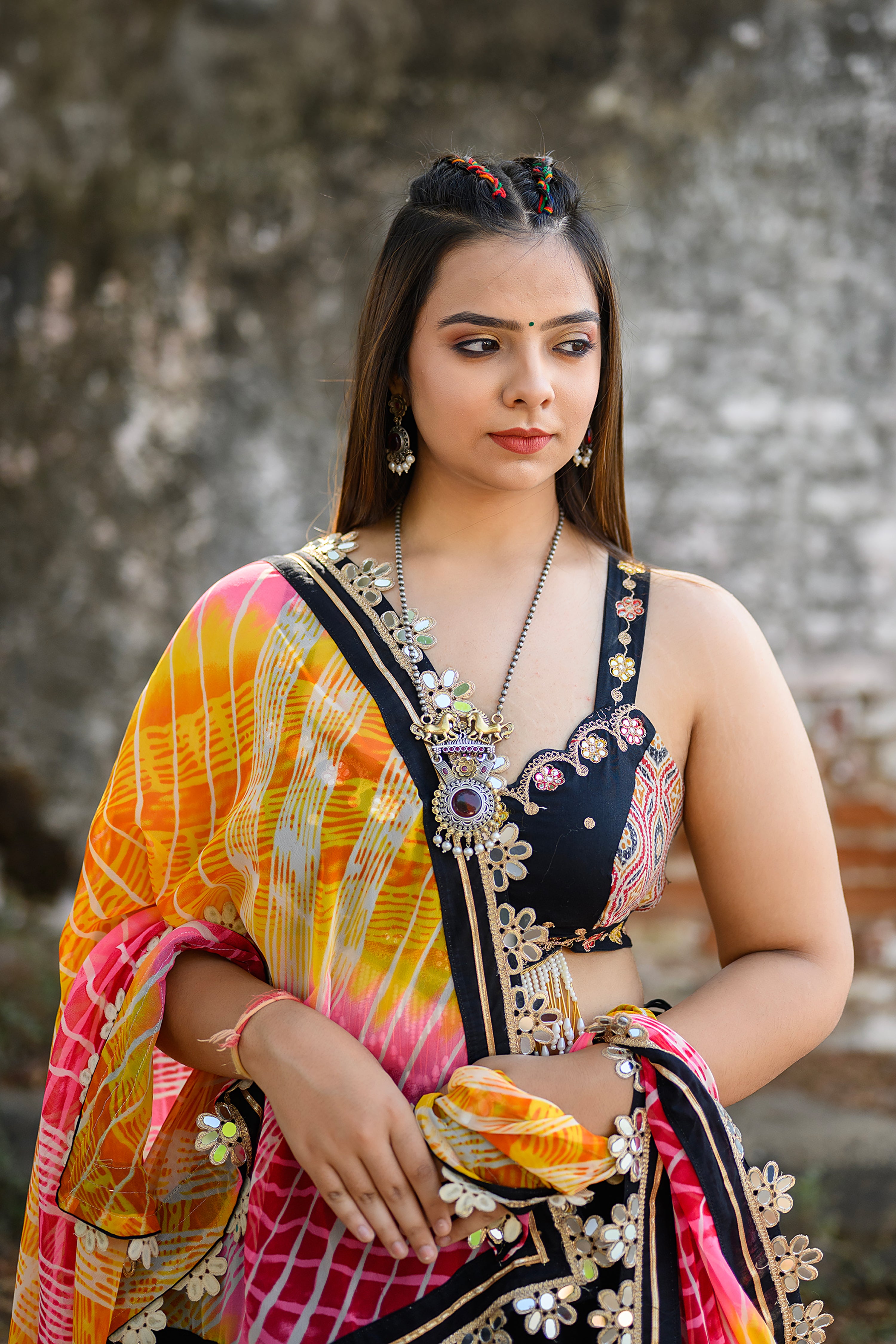 Black Navratri Chaniya Choli with Multi Color Dupatta – Palkhi Fashion