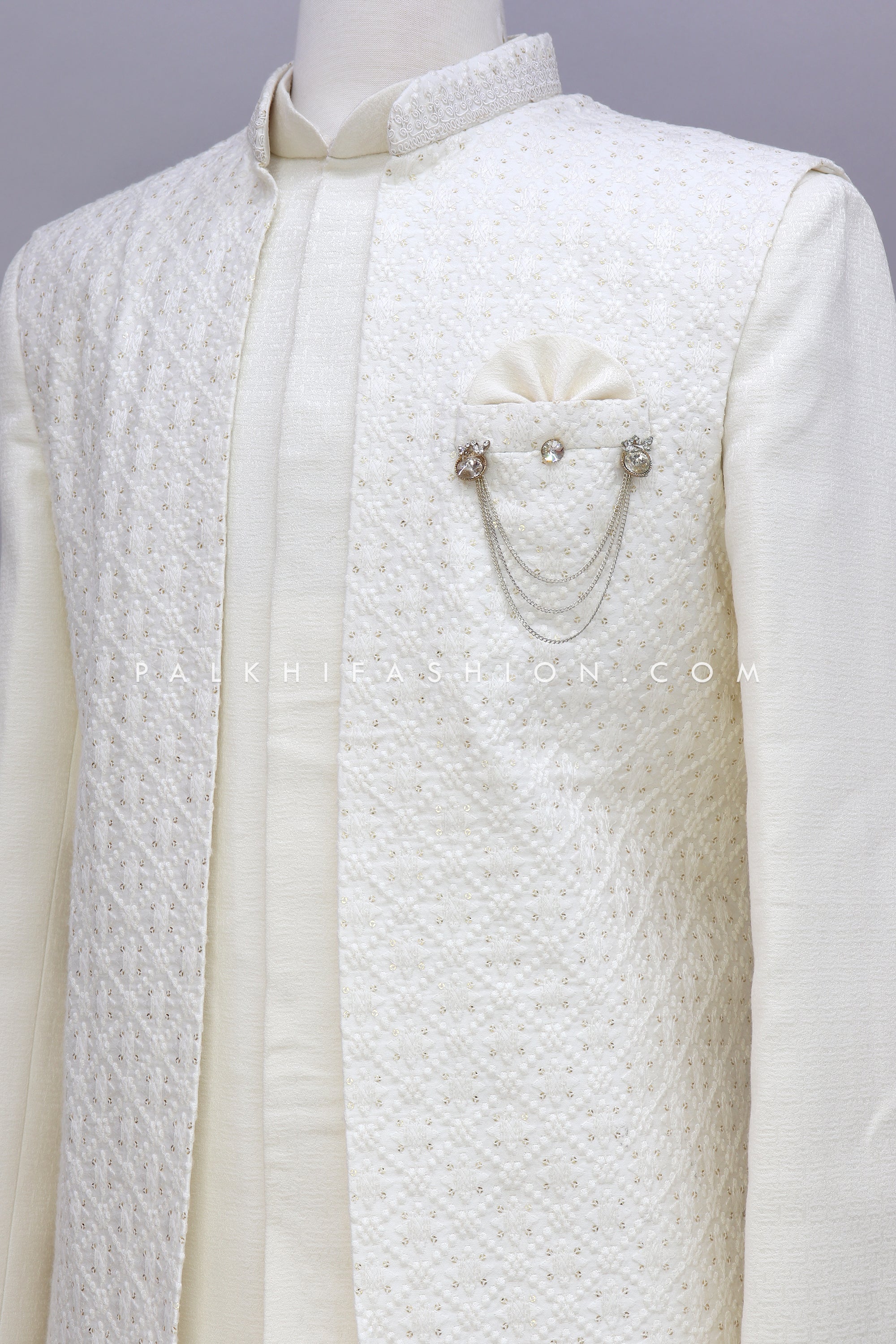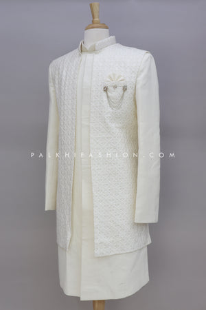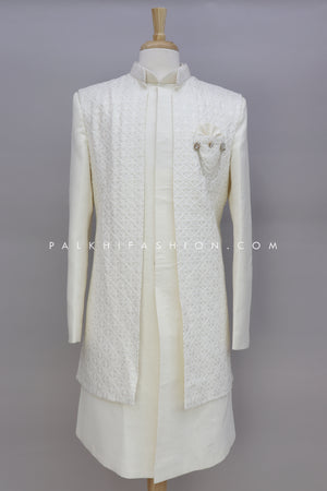 Cream Chikankari Indo-Western With Jacket