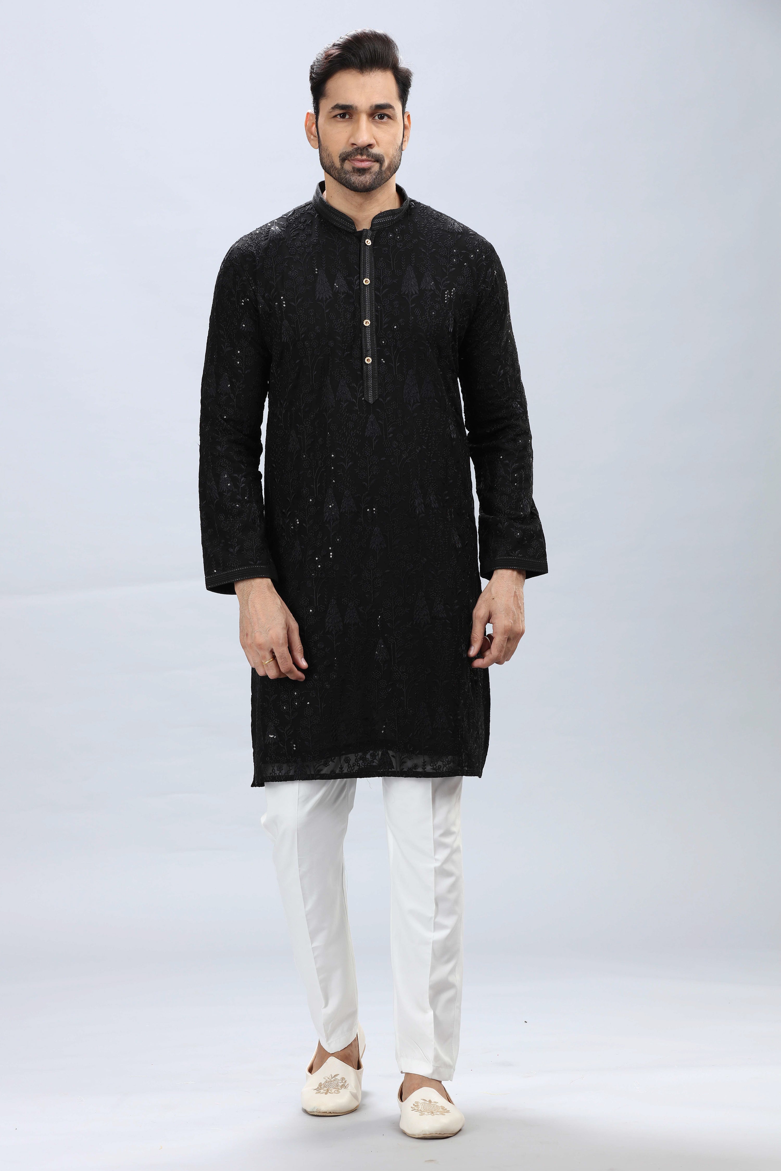 Designer Black Kurta Pajama Set with Sequin & Thread Embroidery – Palkhi Fashion