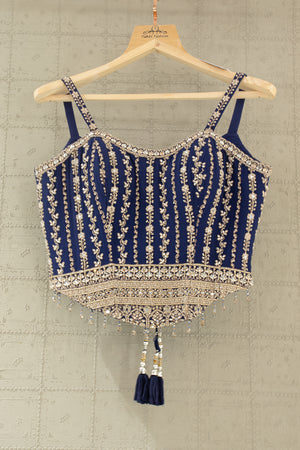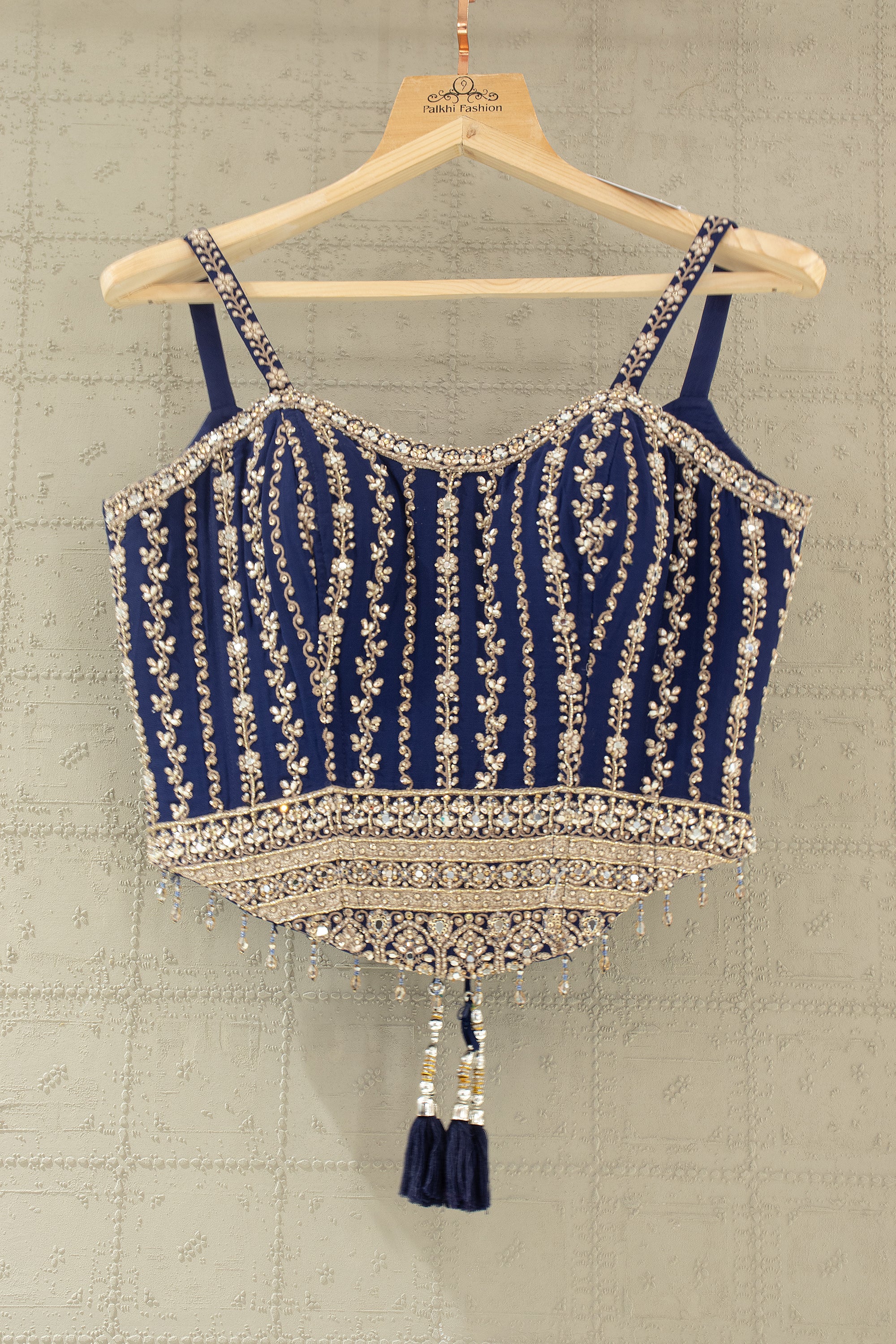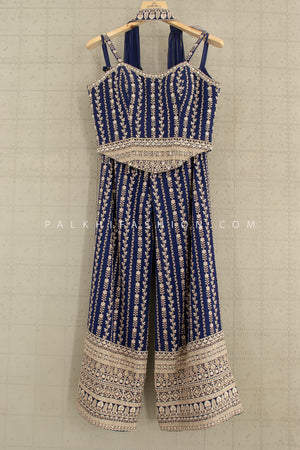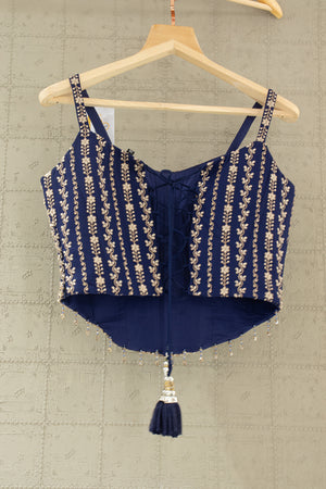 Designer Navy Blue Palazzo Set with Beaded Corset Top – Shop Palkhi Fashion