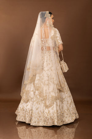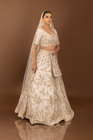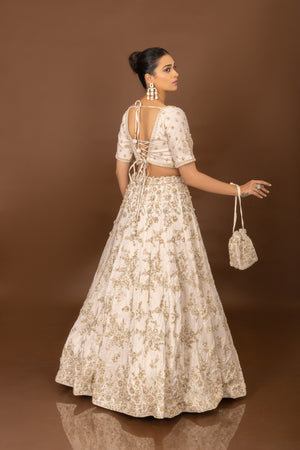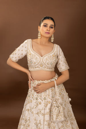 Divine Flair: Artisanal Off White Designer Lehenga Choli with Handwork