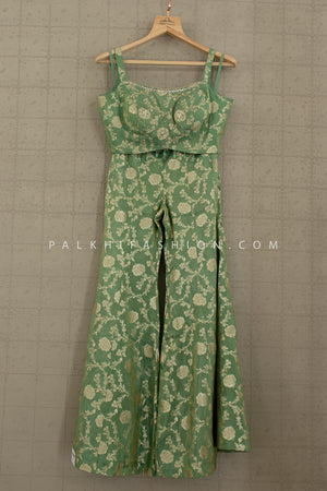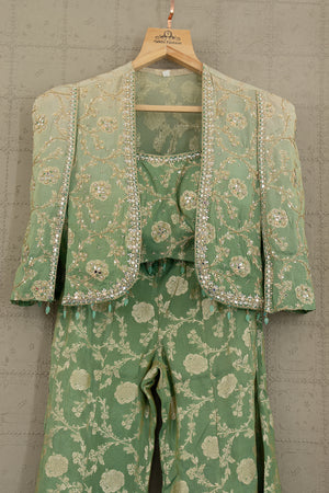 Enchanting Ombre Green Banarasi Crop Top Palazzo with Embellished Jacket – Palkhi Fashion