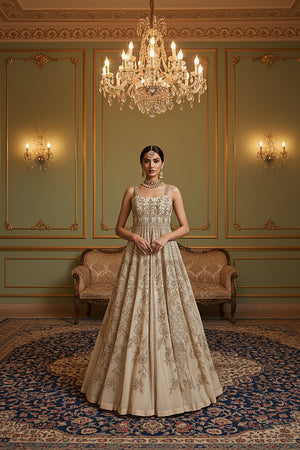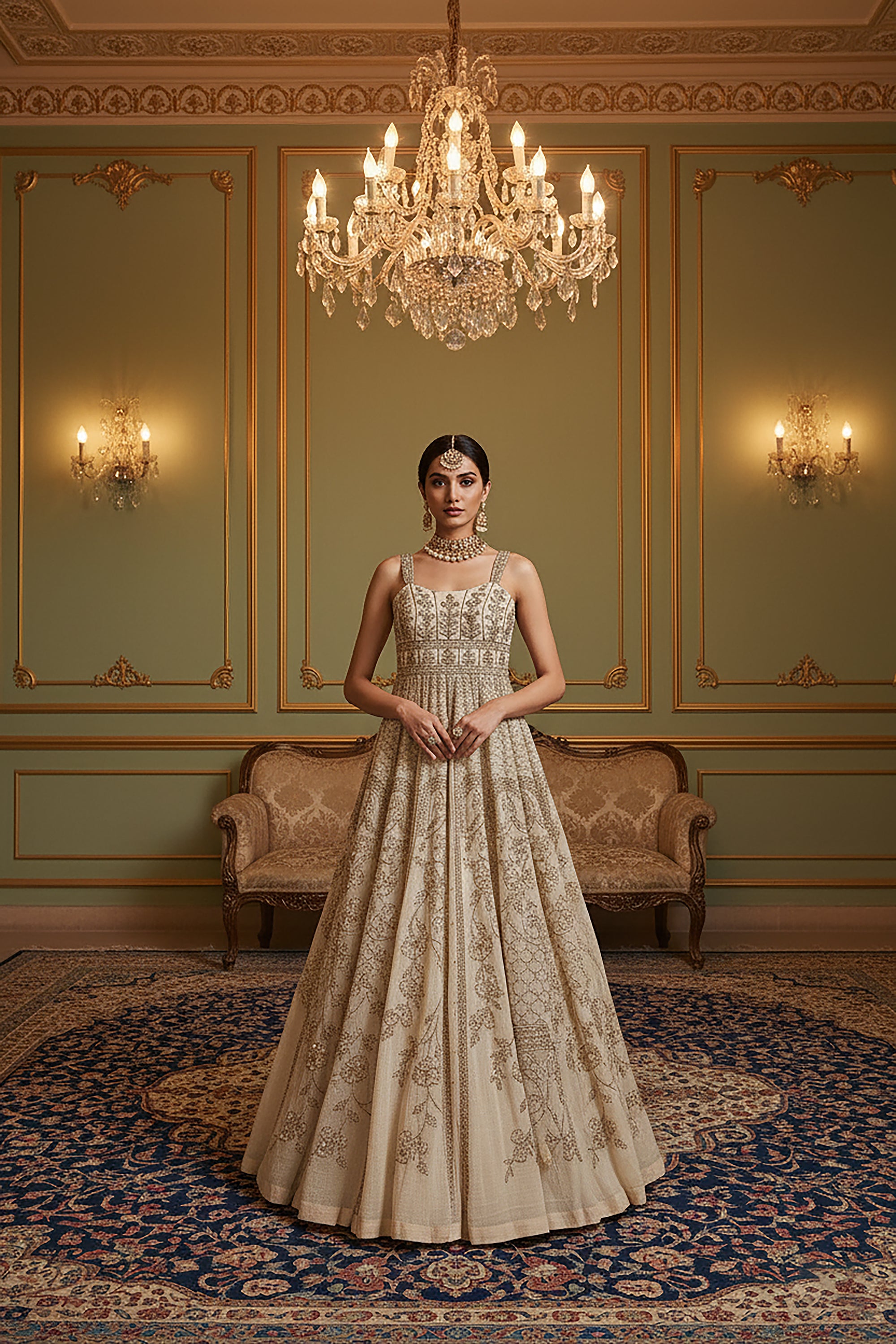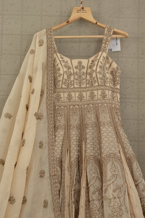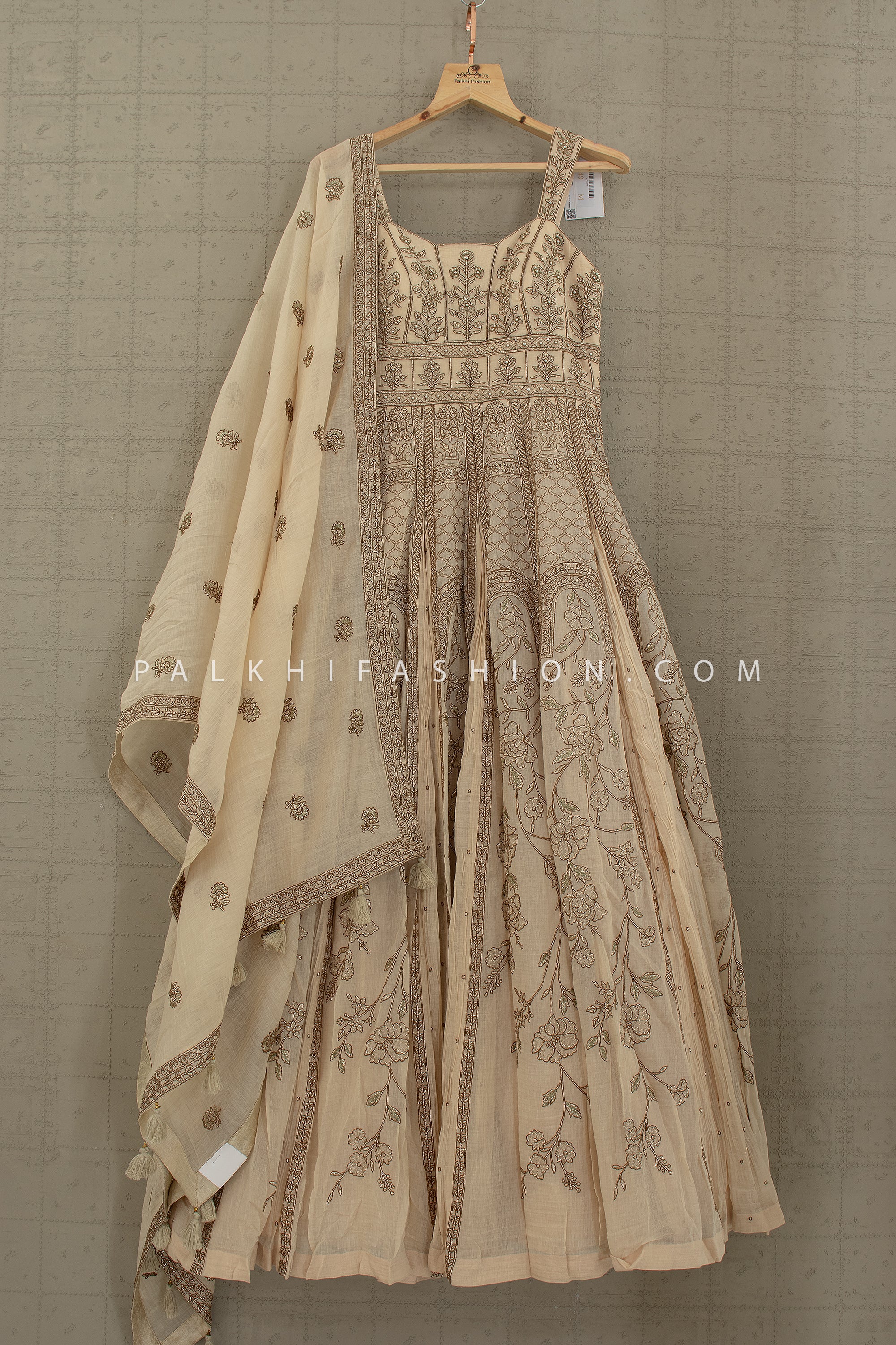 Eternal Ivory Elegance: Stunning Embroidered Designer Anarkali Gown– Palkhi Fashion