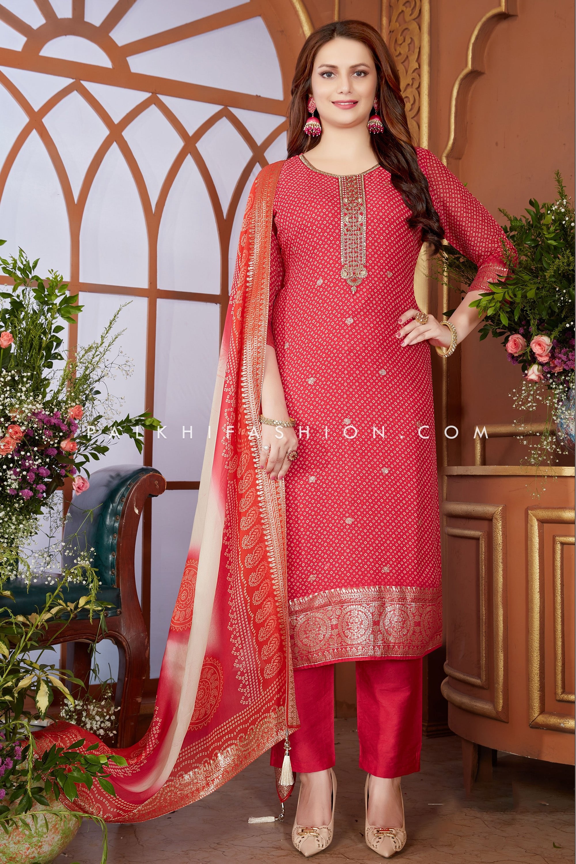 Luxurious Bandhani Straight-Cut Suit with Elegant Work