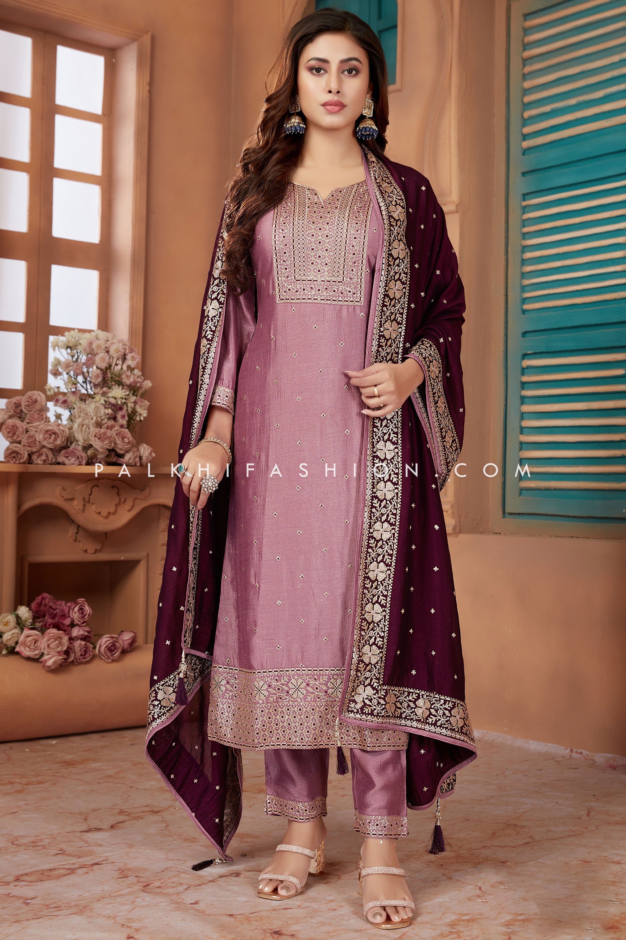 Mauve/Wine Soft Silk Straight Cut Suit for Every Occasion