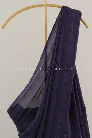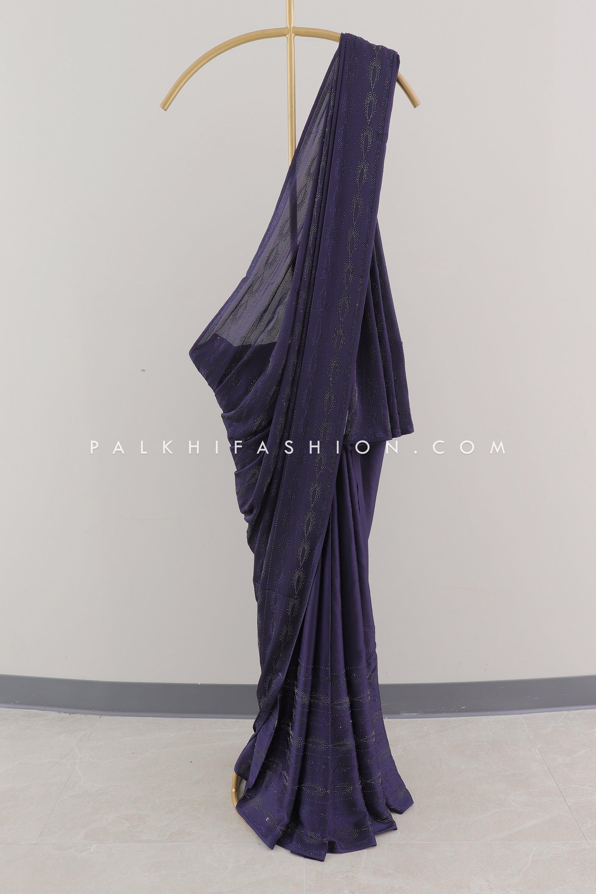 Navy Blue Crepe Saree with Swarovski Embroidery - Palkhi Fashion
