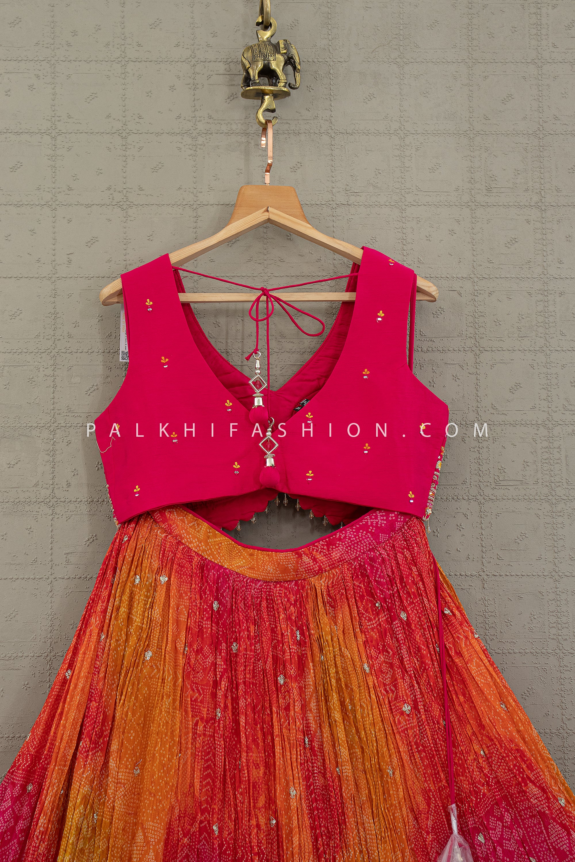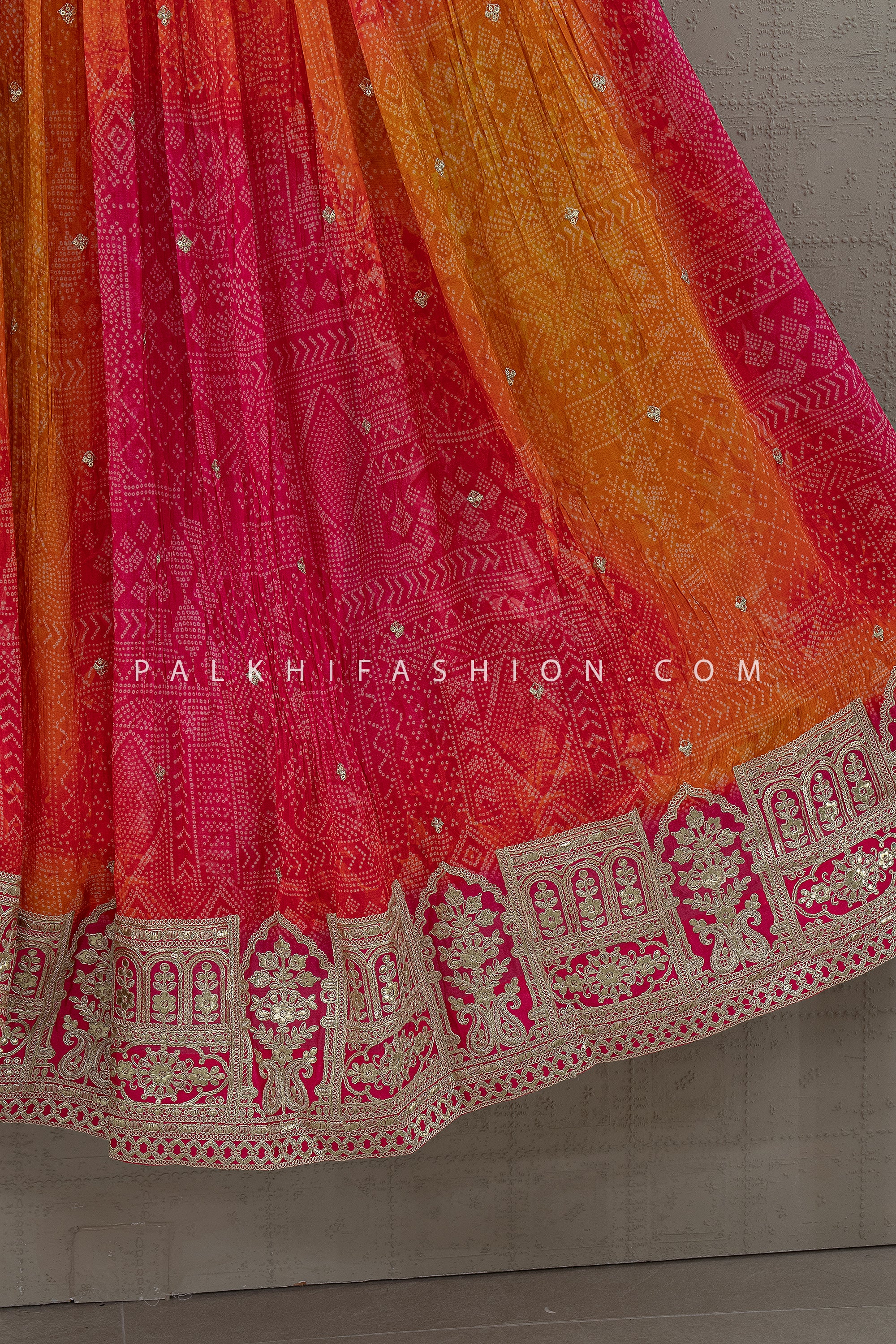 Radiant Bandhani β Multi-Color Bandhani Silk Designer Lehenga Choli | Palkhi Fashion Houston