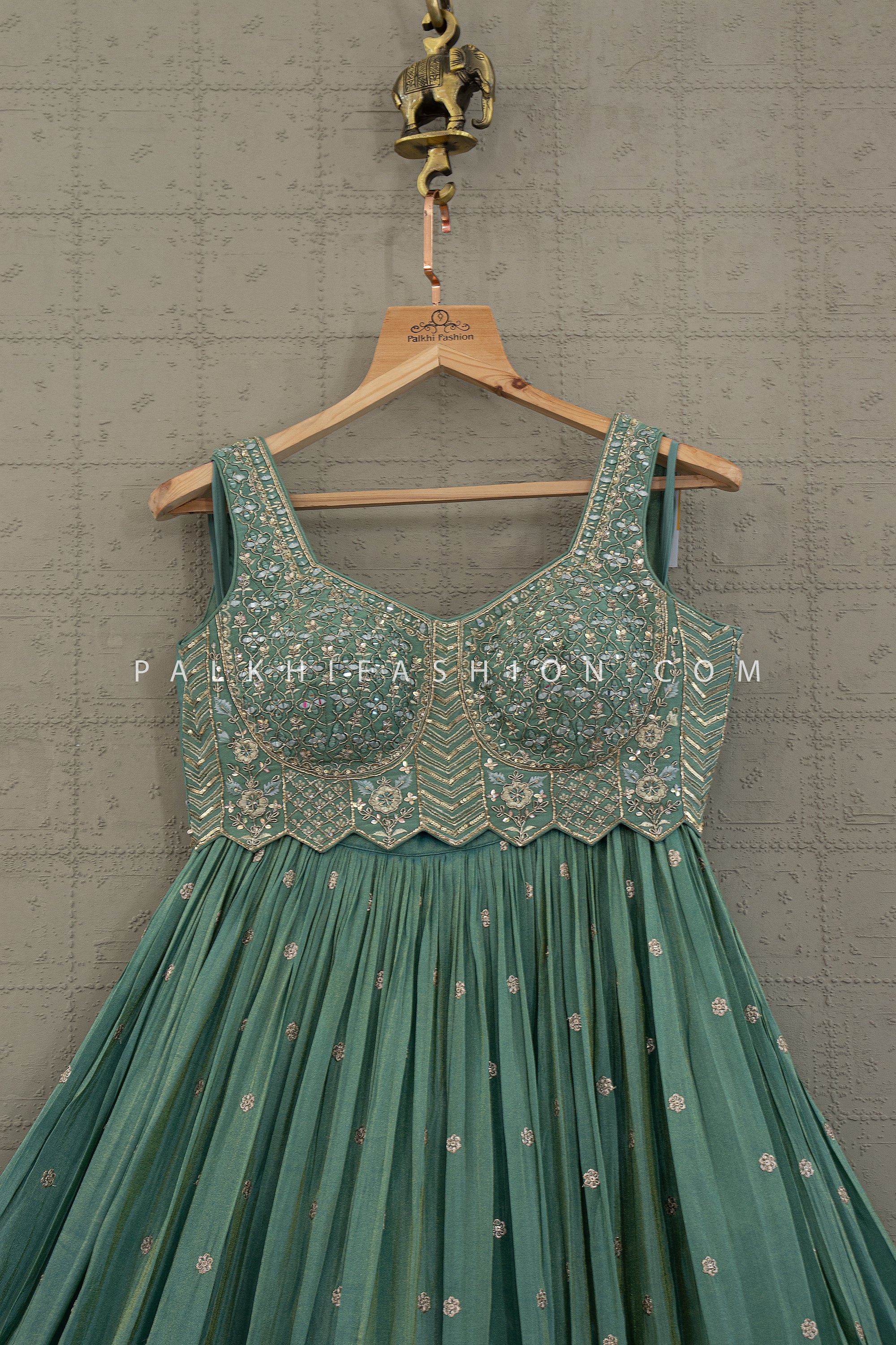 Sage Green Heritage Couture — A Pastel Masterpiece for Elegant Celebrations