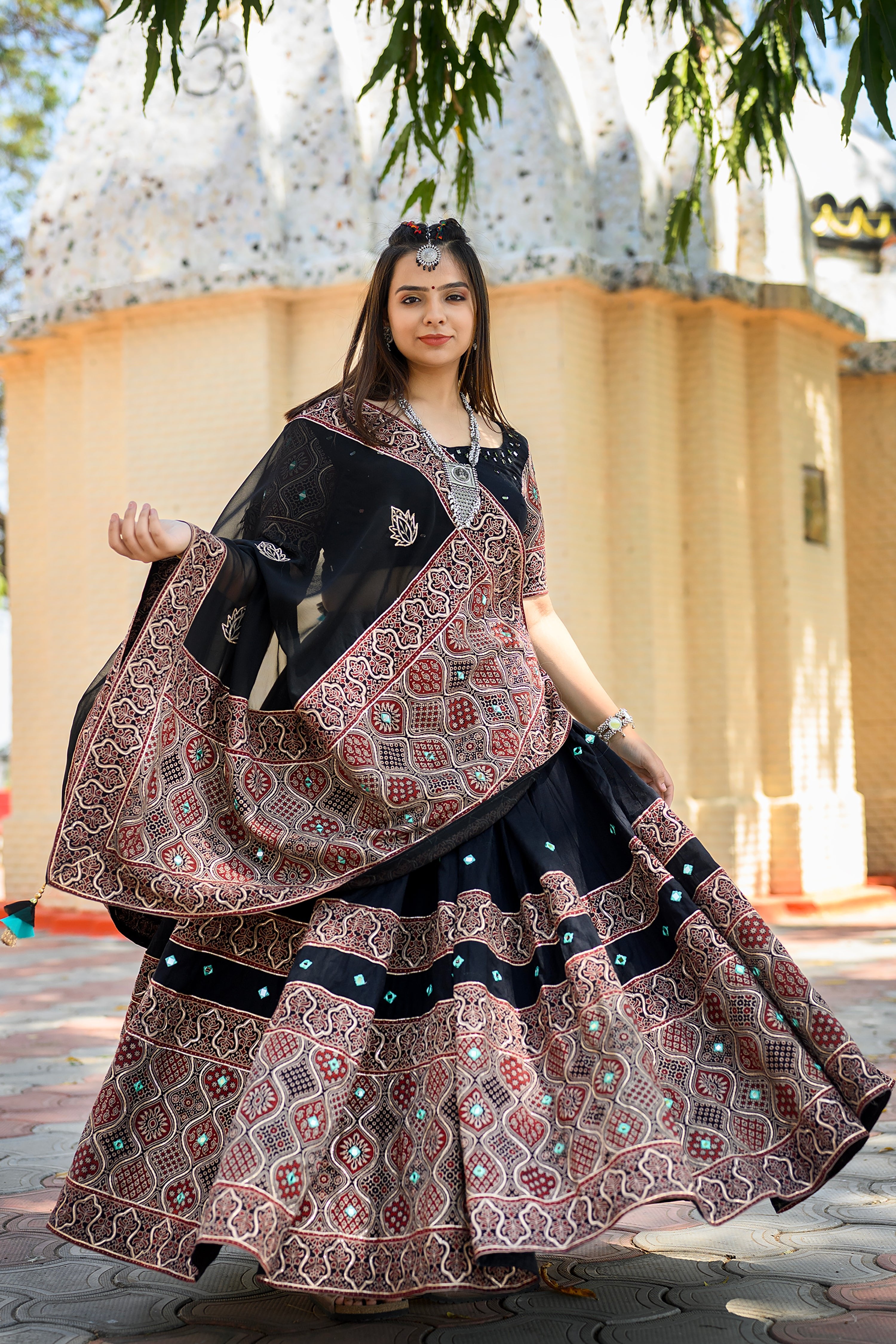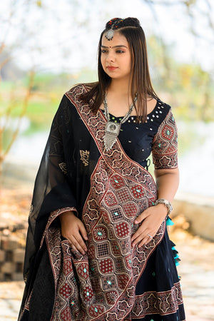 Timeless Black Ajarakh Navratri Chaniya Choli with Elegant Work | Palkhi Fashion