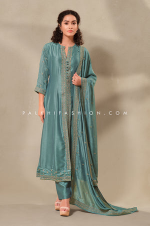 This premium soft silk Indian outfit from Palkhi Fashion is designed for effortless elegance. Featuring intricate embroidery and subtle thread work in an appealing color palette, this piece is a must-have for those who love timeless fashion. It comes with a matching soft silk dupatta and coordinating pants, ensuring a beautifully cohesive look for any occasion.